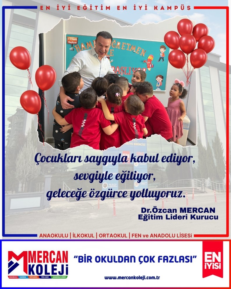 Çocukları Saygıyla kabul ediyor, Sevgiyle Eğitiyor, Geleceğe Özgürce yolcu ediyoruz. Dr.Özcan MERCAN Eğitim Lideri Kurucu Mercan Koleji En İyi Anaokulu İlkokul Ortaokul Fen ve Anadolu Lisesi