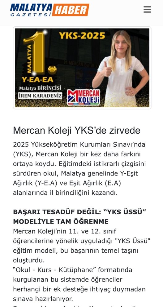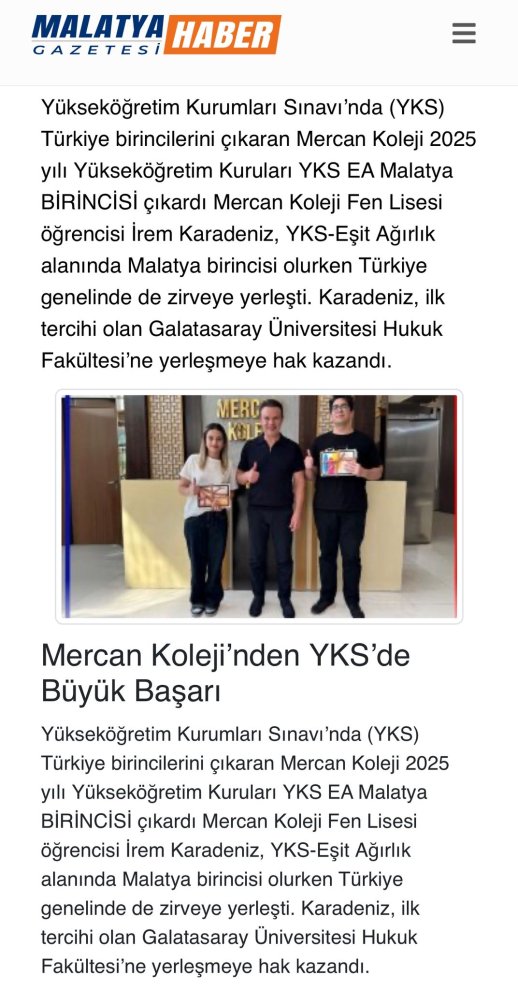 Malatya BİRİNCİSİ Mercan Koleji